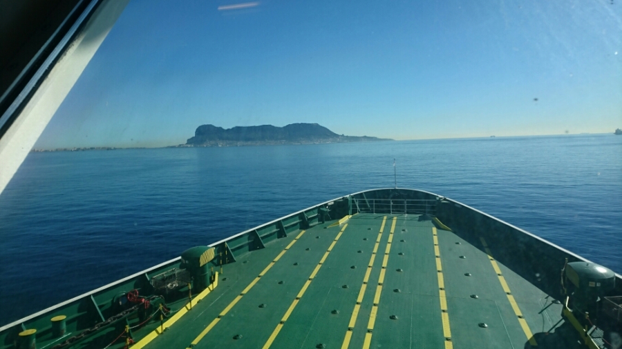 Färjan M/F Tanger Express avgick klockan 12:00 på utsatt tid. Havet var helt lugnt. Vi åt varsin baugett till lunch. Ganska precis två timmar senare går vi iland vid Tanger Med. Det gick mycket smidigt att köra av ända tills vi kom till tullen. En blankett med uppgift om bilens chassinummer, märke och ägare måste fyllas i. Så efter en halvtimma kom tjänstemannen och kollade övriga papper på bilen och gröna kortet. Vi fick öppna luckorna på bilen och han gick till och med in i bilen och kollade. Så stämplade han pappren och vi kunde fortsätta. Strax utanför tullen fans några bankkontor och bankomater, så vi kunde ta ut marockanska dirham. Stora annonser om Marockanska simkort fanns uppe och då vi kört ytterligare några hundra meter gick några pojkar på gatan och sålde simkort. Jag hade min gamla mobil med som en kille installerade kortet i. Han kunde bara franska och arabiska men kortet var gratis förstod vi men han ville ha 10€ för att hjälpt oss. Internet fungerade alldeles utmärkt och då jag delade ut telefonen kunde både Birgitta och jag surfa på våra vanliga telefoner.