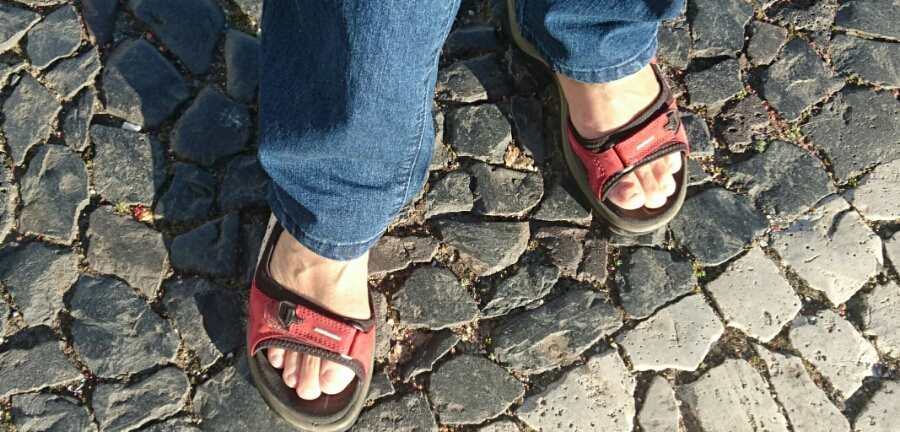 Efter lunch i bilen promenera vi till centrum och handlar en påslakan.