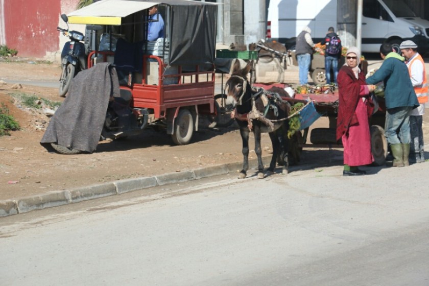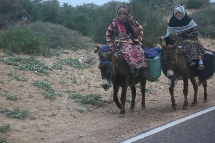 Många åsnekärror efter vägen. I Safi blir vi stoppade av polisen men dom kunde bara franska så vi vinkades att fortsätta. Efter Safi kom vi på väg N1 som var i bra skick.