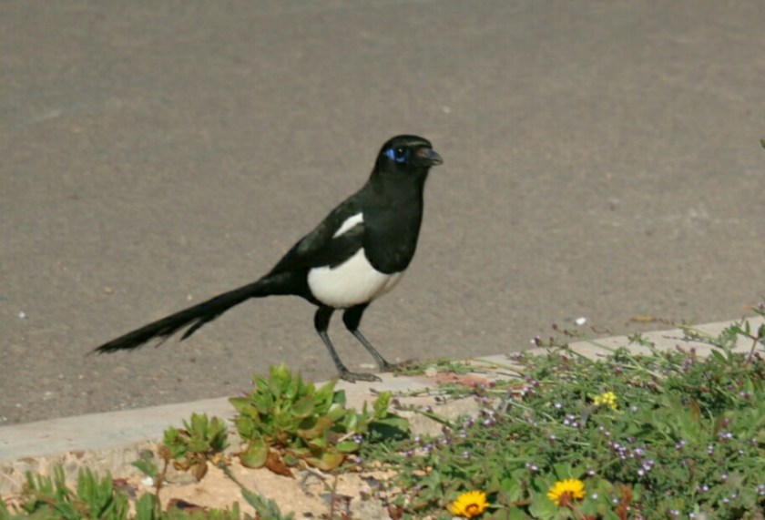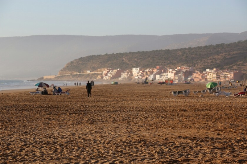 Ett gäng skator av den marockanska rasen höll till där. Den långa stranden är kantad av hotell.