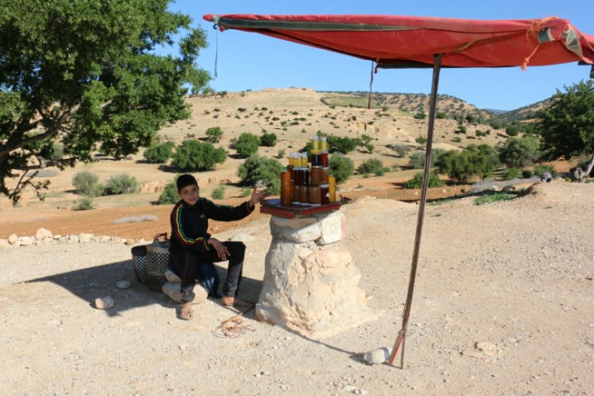 Vi lämnar ställplatsen i Oualidia vid halv niotiden och kör mot Ounagha, en liten ort 20 km öster om Essaouira.