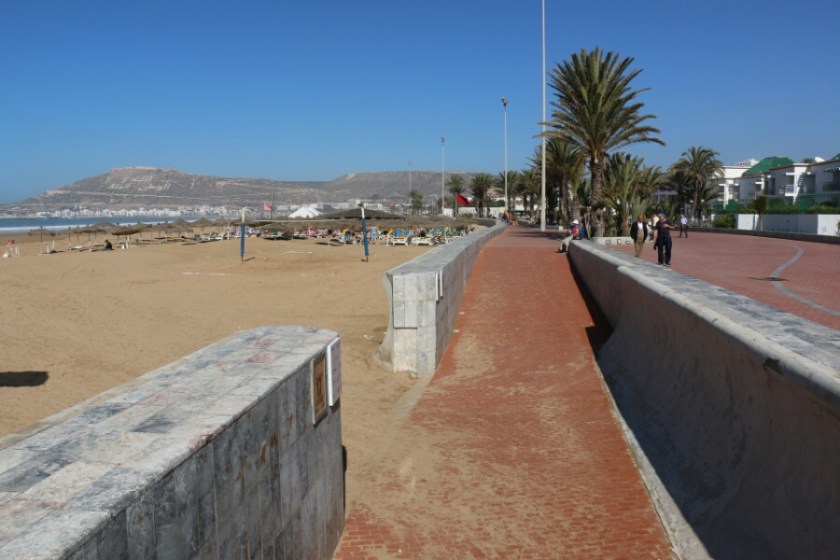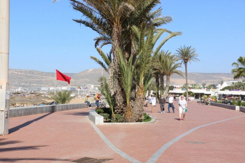 Strandpromenaden var fylld av strosande marockaner och turister.