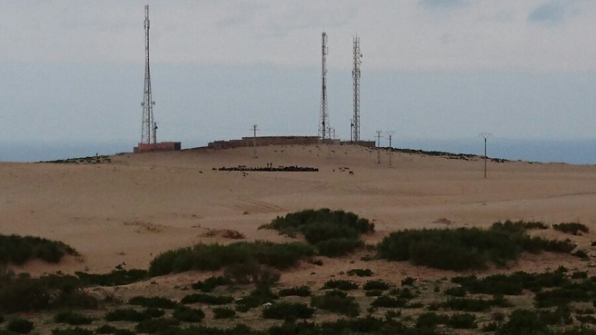 Sol från klarblå himmel i dag också. Vårt nyinköpta simkort från Marocko telekom blev snabbt tömt på gigabyten. Vi tar taxi till Marjane affären där Marocko Telecom har ett kontor och köpte 10 Gig för 100 MD. Promenera sedan mot stranden dit det är c:a 2,5 kilometer. Går genom ett stort område där gator dragits men inga hus byggds ännu.