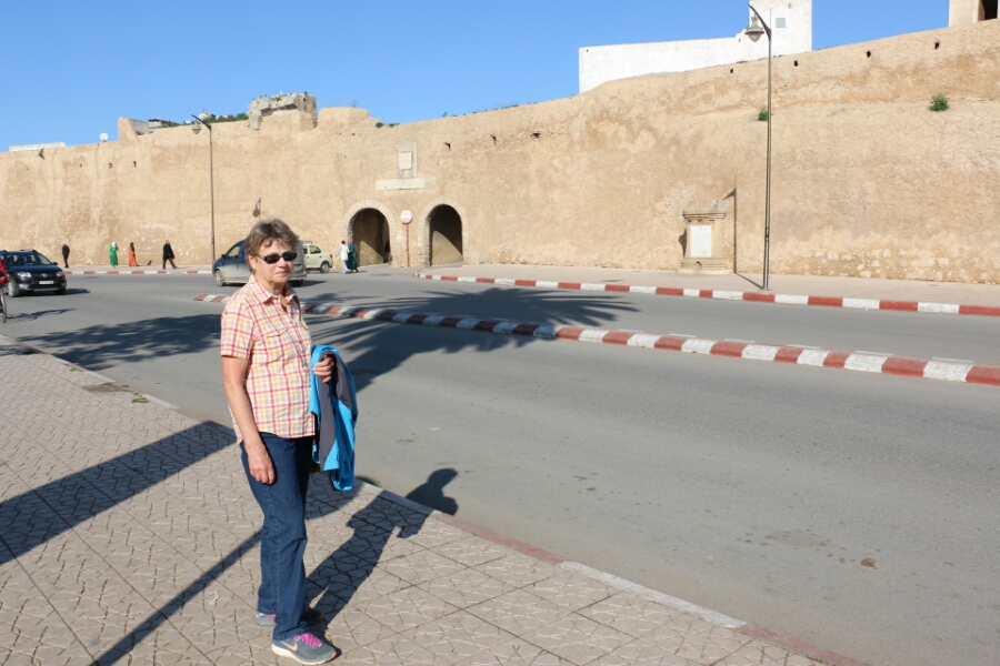 Framme halv tio på denna lilla camping innanför höga murar. Trångt med platser så vi väntar tills en engelsk bil lämnar och vi tar deras bra plats. Solen skiner då vi promenera de dryga 2,5 kilometerna in till Medinan.