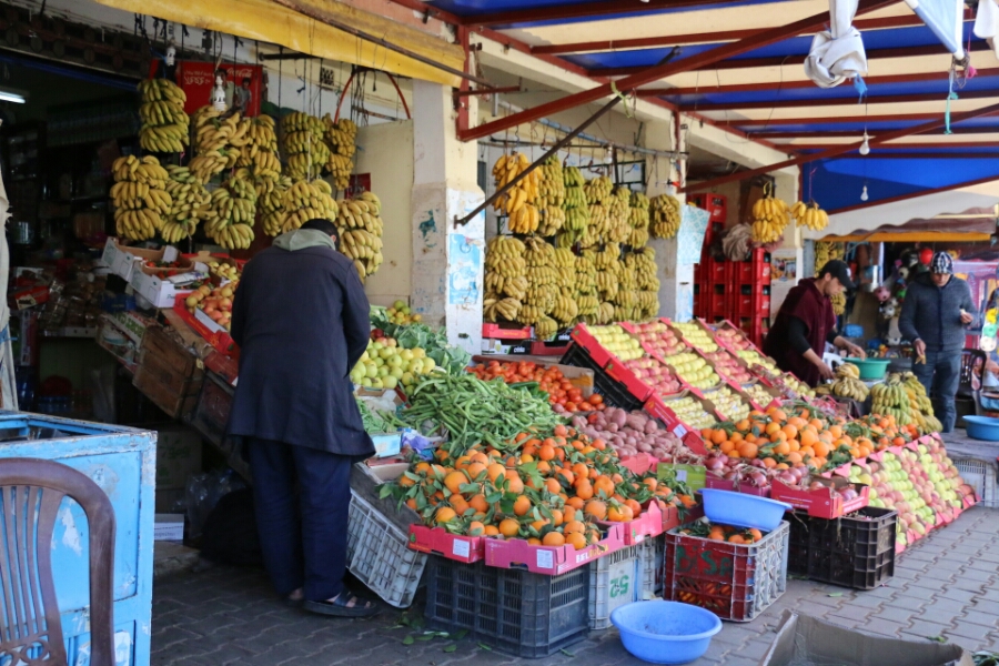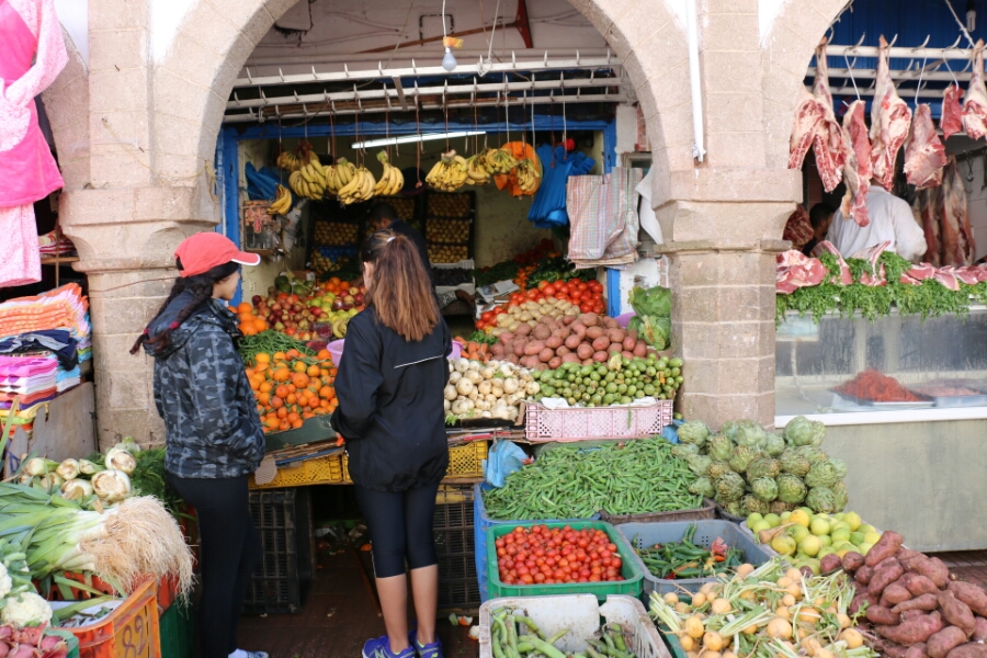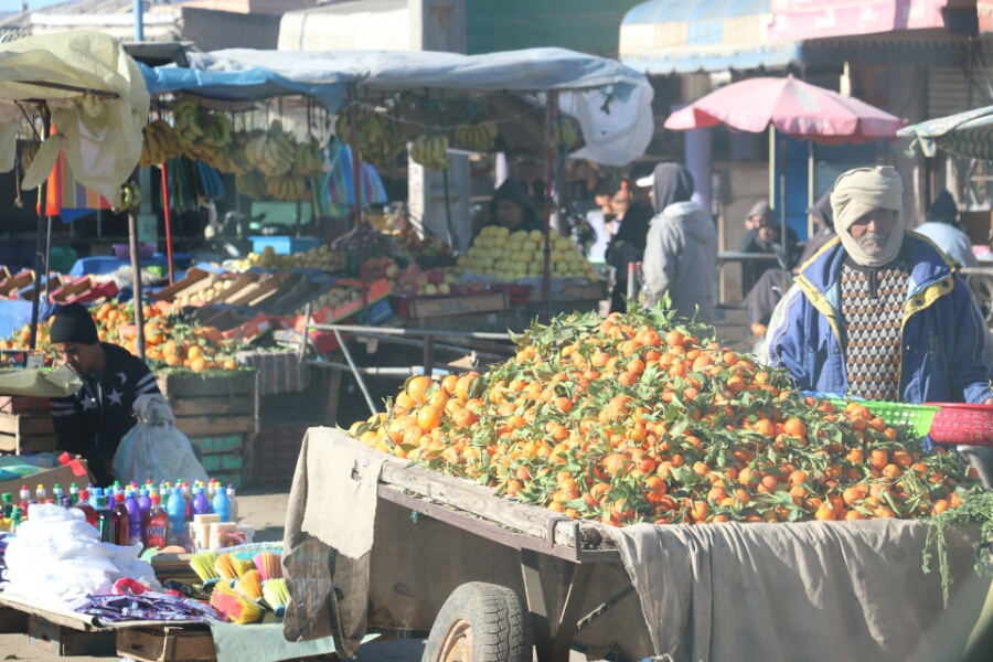 Stannar i Tamri och handlar lite frukt och äter lunch.