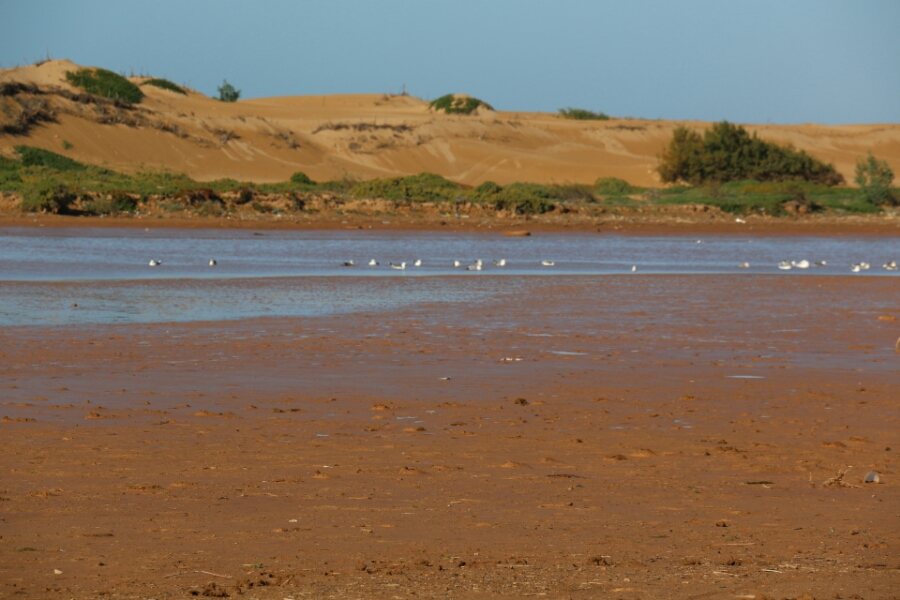 Vägen är ojämn med dålig asfalt. Det finns många små laguner mellan vägen och stranden. Många vadare och änder övervintrar här. Det fanns bara ett ställe att stanna på efter vägen där man kunde spana efter fåglar och dom var på mycket långt håll.