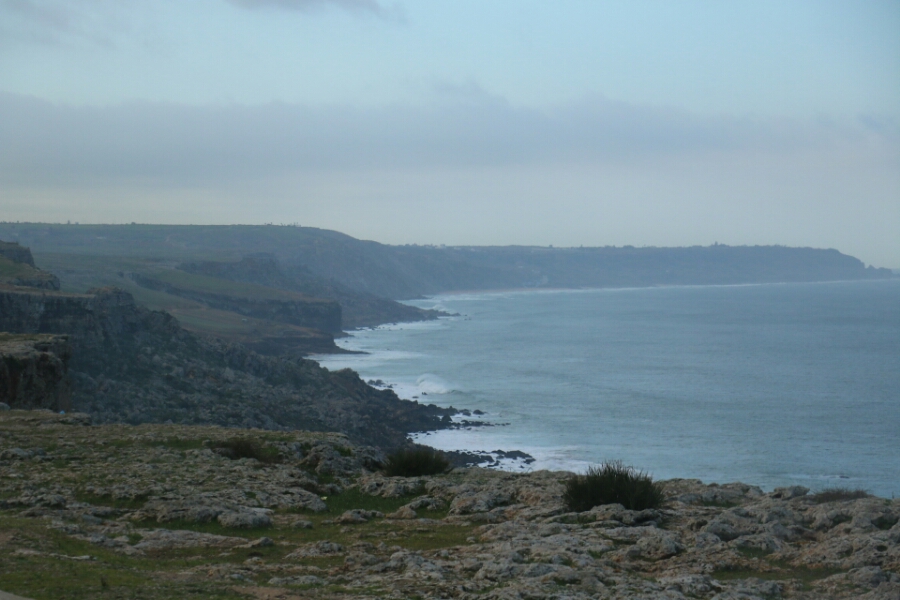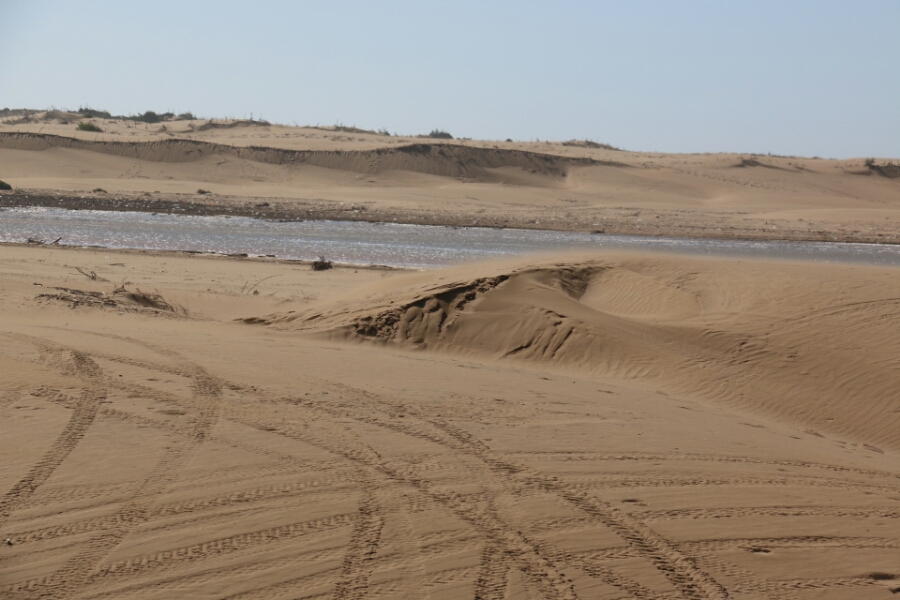 Stannar ett par kilometer norr om Tamri och går en väg ner mot havet som först passerar genom ett stäppliknande landskap med små buskar och sedan över ett stort område med sanddyner. Ville kolla branten ner mot havet då ibisarna häckar i branta stup.