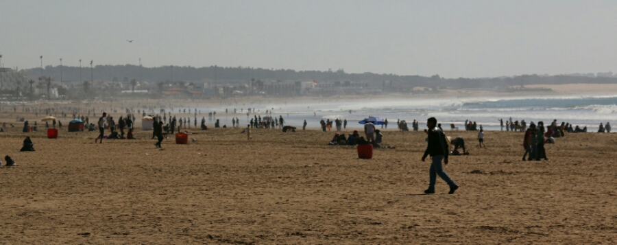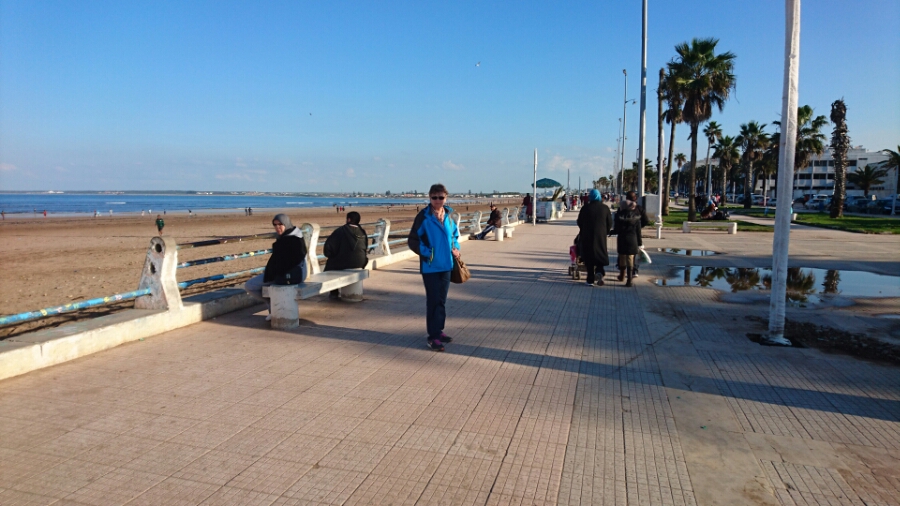 Strandpromenaden var fylld av strosande marockaner och turister.