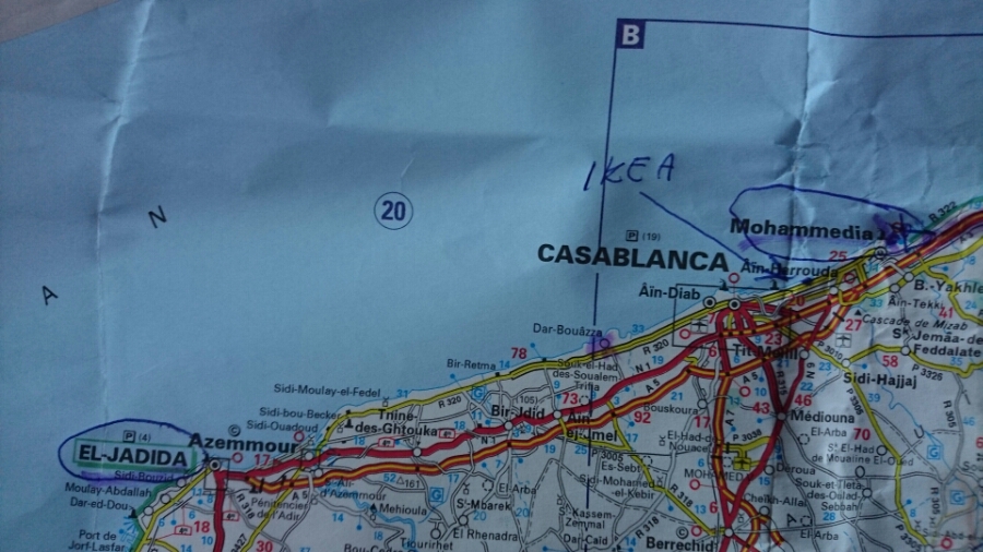 Vi lämnar Camping L’Ocean Blue vid niotiden efter att betalat 270 DH för tre nätter med el. Det har klarat upp och solen skiner då vi kör mot El Jadida.