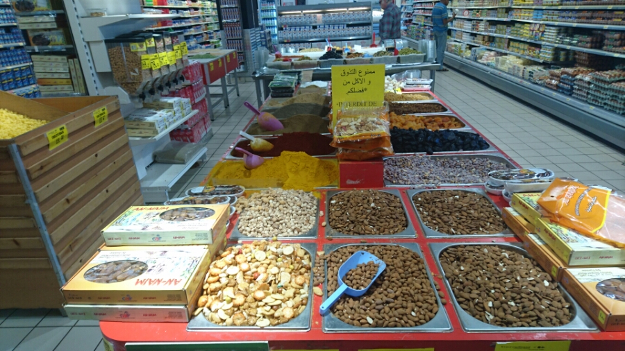 Detta blir sista dagen i Agadir då vi kör söderut i morgon. Promenerar åter in till den arabiska stadsdelen för att bunkra upp med mat i Carrefour affären. Går först till den långa gågatan. De flesta affärerna är stängda på söndag. Vi stannar vid Caf’e Restaurant Arcades och tar varsin te.