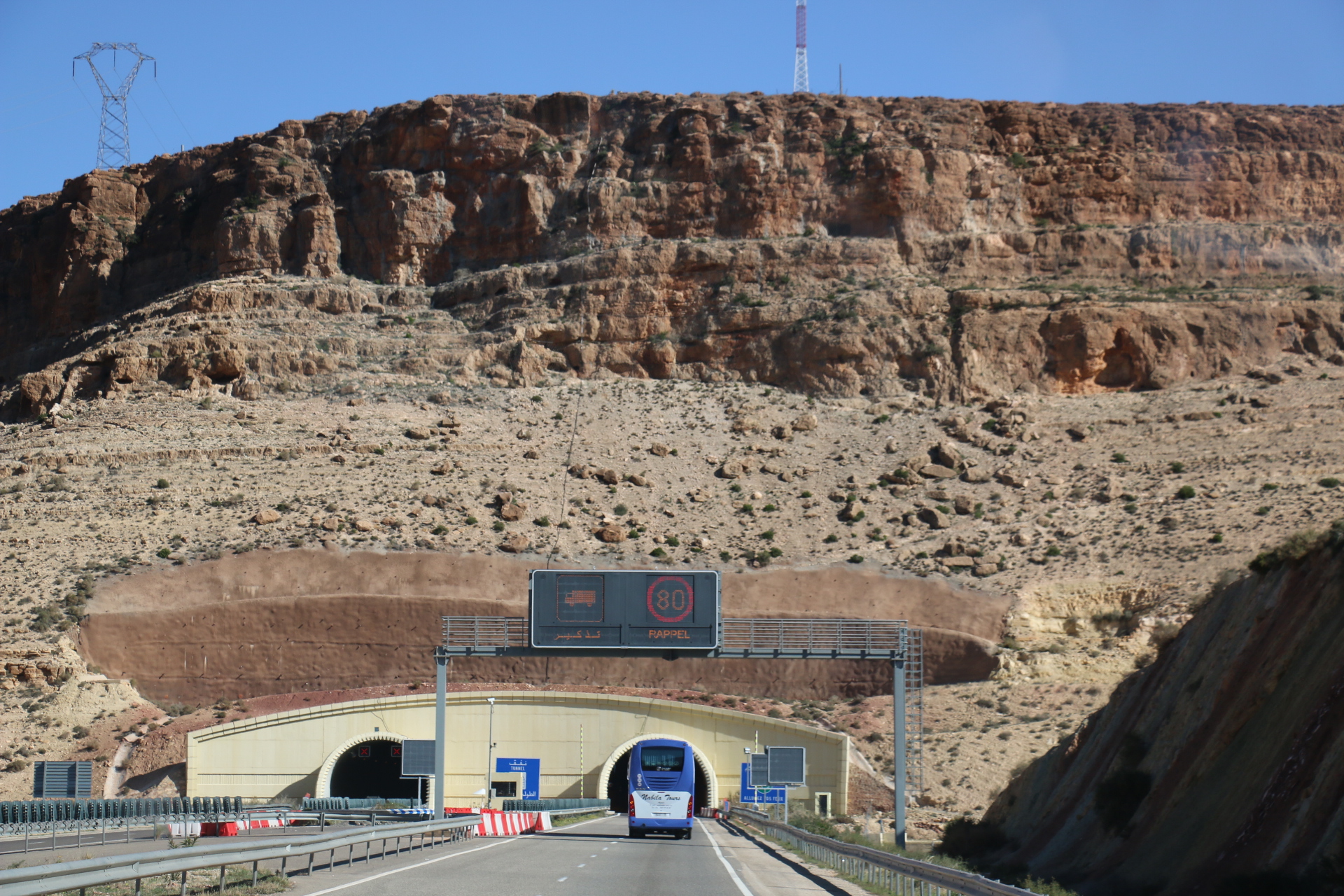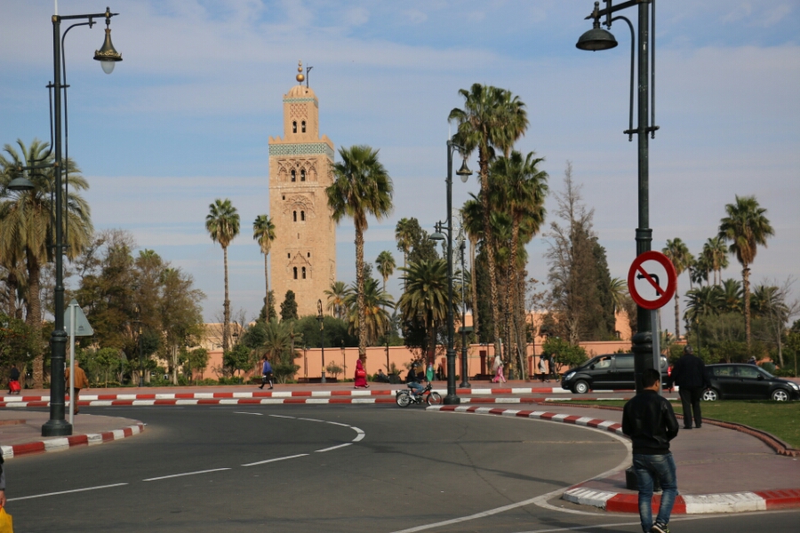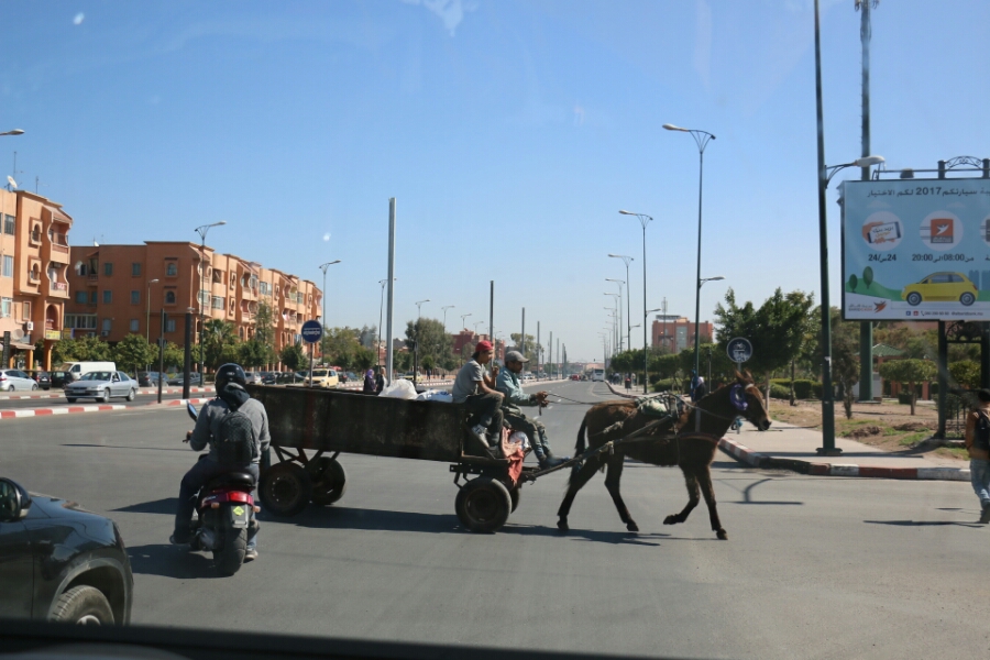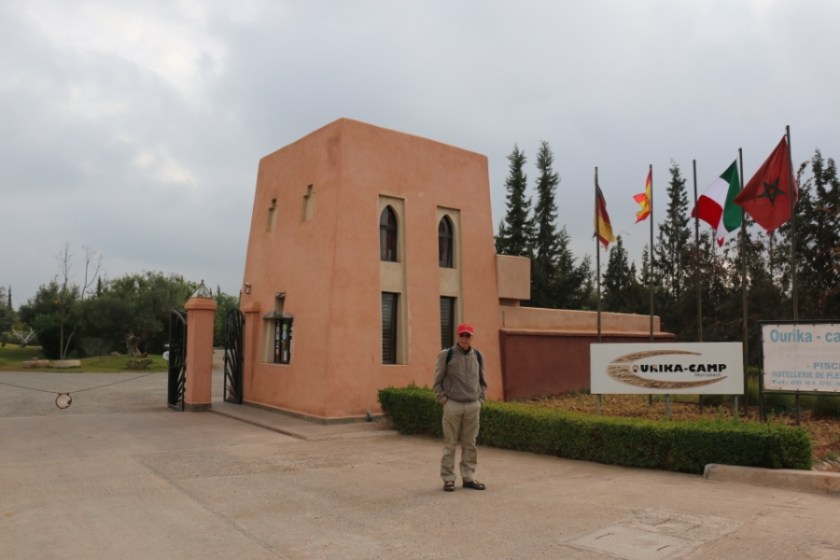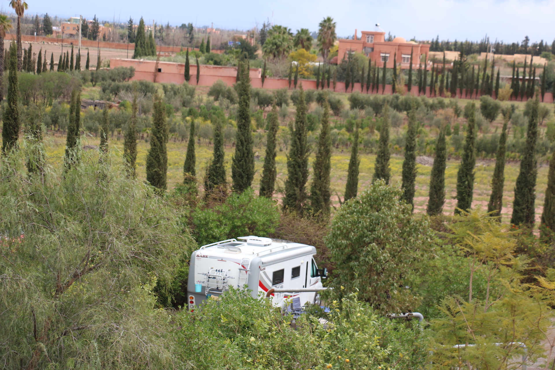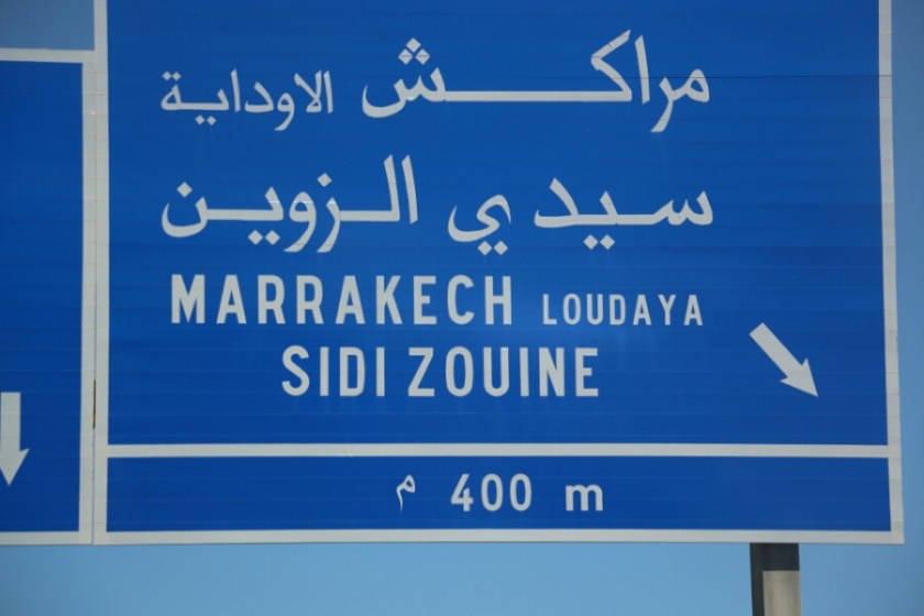 Vi lämnar Camping Le Jardin de la Koudya redan 08:00. Receptionen var stängd och grindarna till campingen likaså, men inte låsta. Jag fäste en lapp med våra personuppgifter och 100 MD på handtaget till receptionen och öppnade grindarna så vi kom iväg mot Marrakech. Vi kör närmaste vägen ut till motorvägen mot Marrakech.