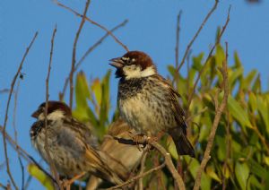 Stigen går ganska långt från floden. Det är mindre fåglar nu än normalt då det är ovanligt mycket vatten i floden enligt guiden. Efter 2 km är vi framme vid gömslet, ”vadarhuset”. Här brukar det stå tranor så här års men inga var där nu. Knappt några vadare och dom fanns var på långt håll. 10 storskarvar av den marockanska rasen satt på stolpar långt ut i floden. I buskaget efter stigen ser vi en flock spansk sparv och två svartkronade tchagra sjöng i ett buskage. Vi hade nu gått i två timmar, solen sken och det var riktigt varmt så vi vände och gick tillbaka till ingången. Vi köpte en flaska vatten i den lokala affären som precis öppnade.