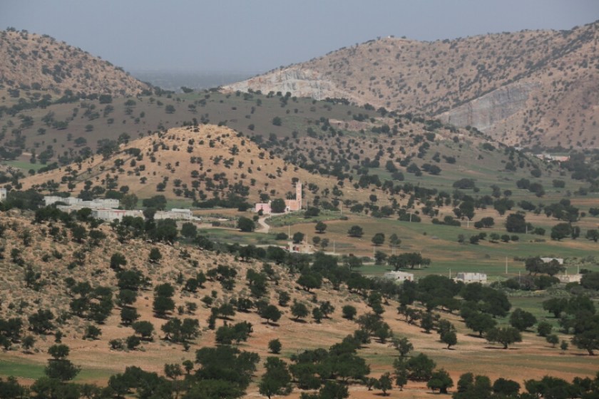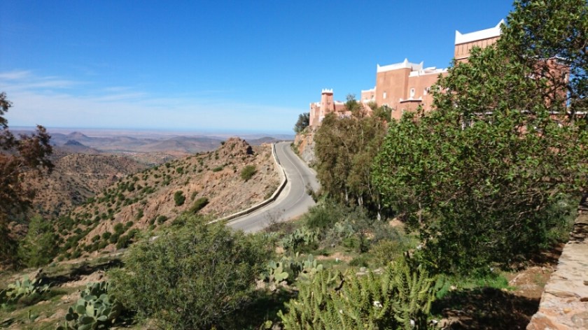 Vi kör mot väg R105 som är backig och krokig så det tar lång tid att köra de 140 kilometerna till Le Jardin de la Koudya, Lakhnafif. Den går över bergen med fantastisk utsikt.