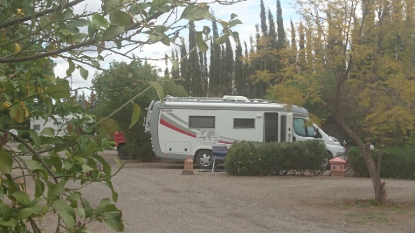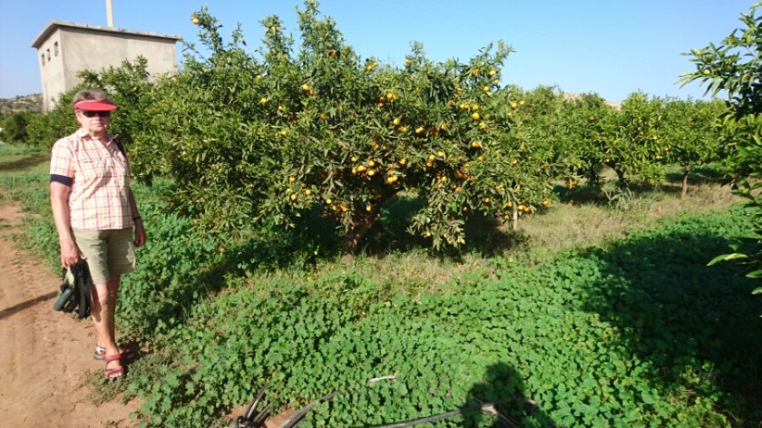 Receptionen var öppen men ingen var där så vi kör in och tar en plats. Campingen ligger inne på en bondgård med potstisodling och apelsinlund.