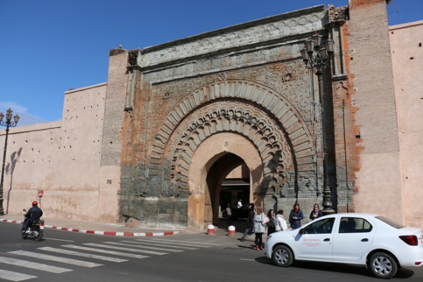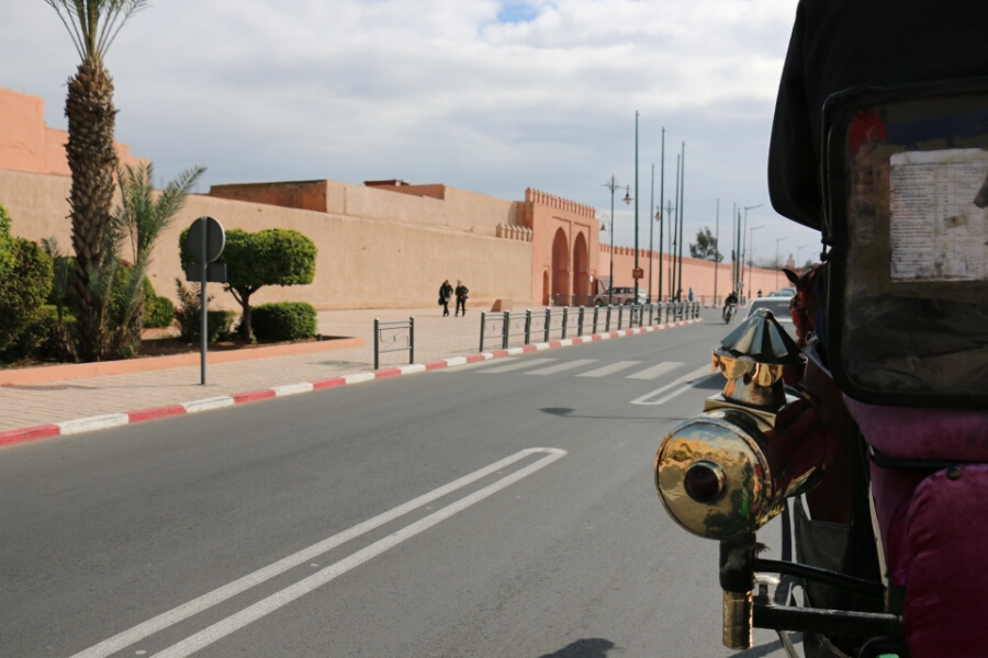 Till slut skulle turen ta en timma och kosta 400 MD. (350 SEK). Vi åkte genom mycket trafik och förbi kungliga slottet och den stora moskén, gamla stadsmuren och Bab Agnaou det gamla Almohadiska palatset.