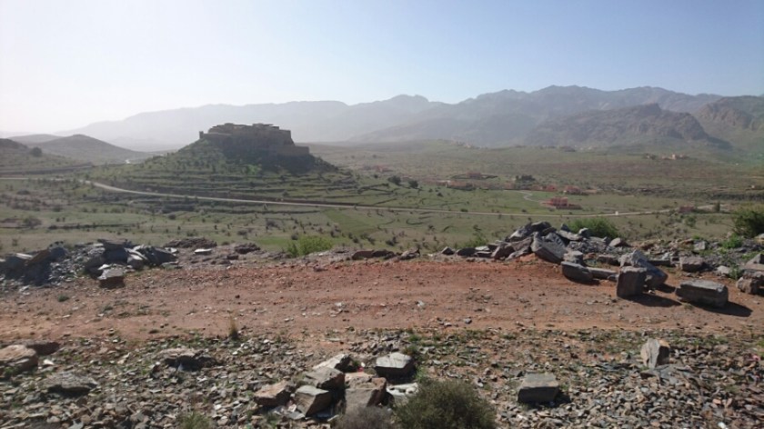 Vi lämnar Camping les 3 palmiers i Tafraoute vid niotiden. Betalade 140 MD för två nätter med el, 6A.