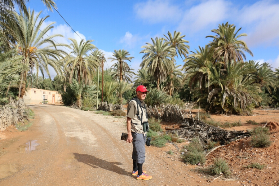 Vi ser en berberstenskvätta på långt håll samt en ökenvarfågel. På kvällen efter det vi intagit middag kom Hassan och lämnade en present till oss. Var sitt fat med steka strömmingsflundror. Vi var ju mätta så dom sparas tills i morgon.