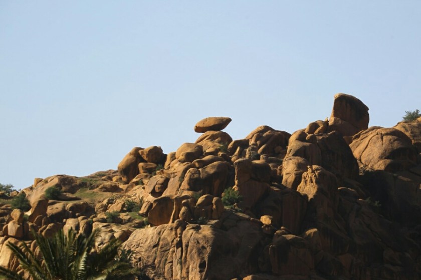 Den ligger längs vägen intill branta bergssidor av sandstensberg. På den branta sluttningen ligger enorma stenblock som ser ut att kunna falla ner närsomhelst. Efter dryga 3 kilometer var vi framme där de största stenblocken låg.