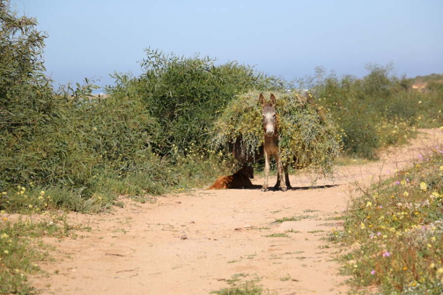 Vi ser gulärla av marockanska rasen samt två roständer. Vi återvände till husbilen då mörka moln tonade upp sig. Klockan 13:30 kom det en regnskur och vi plockade ner tvätten och hänger upp den i husbilen.