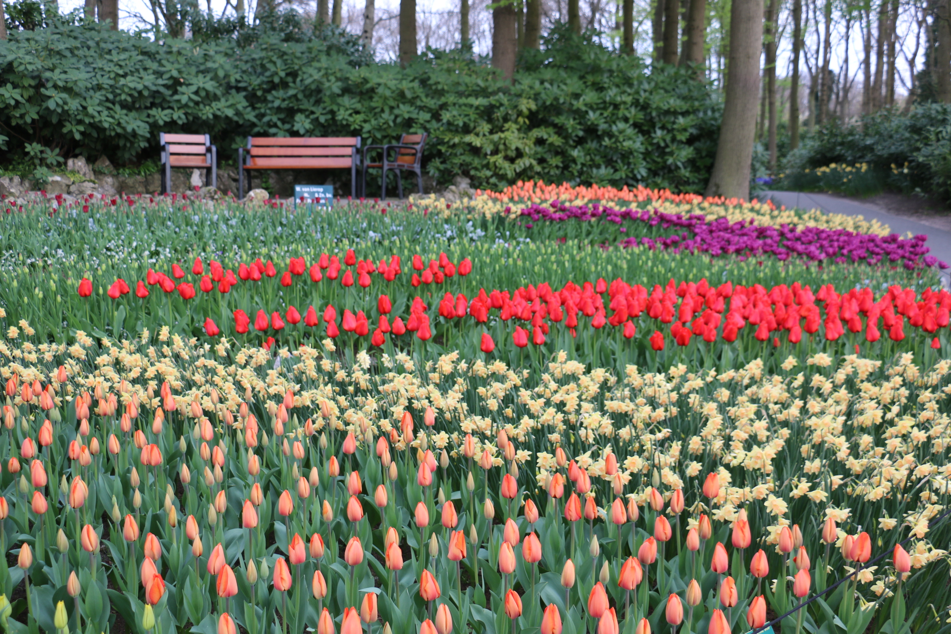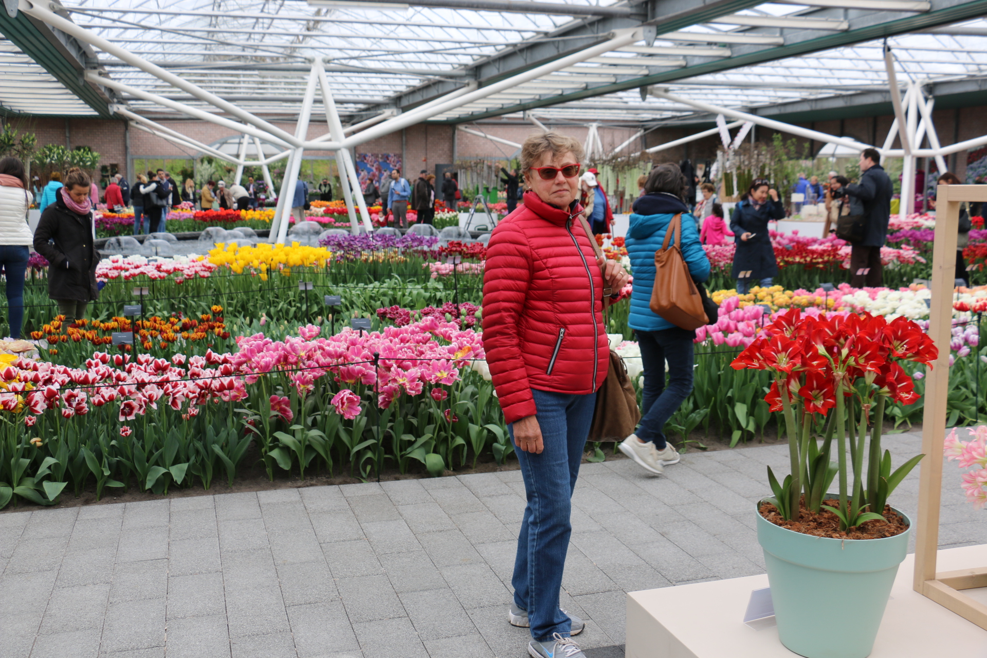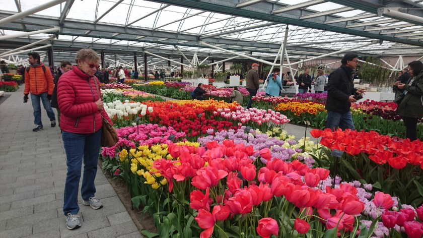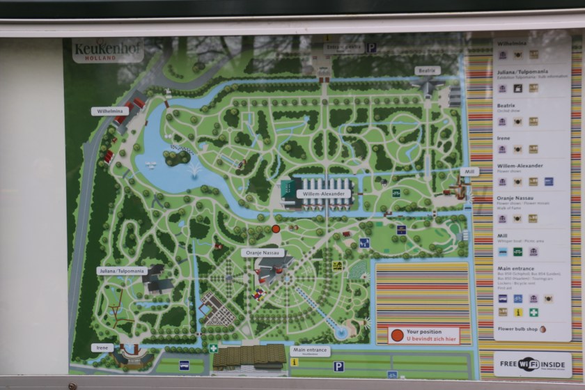 Vi lämnar Camping Sollasi i Noordwijkerhout vid halvniotiden och kör de dryga 5 kilometrarna till Keukenhof blomsterpark och parkerar på den jättestora parkeringen.