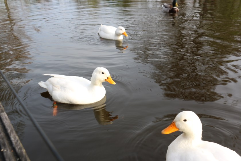 Felfärgade gräsänder i den lilla dammenEn äventyrlig stig i dammenEn vit svan av okänt ursprungInte så mycket folk på morgonen