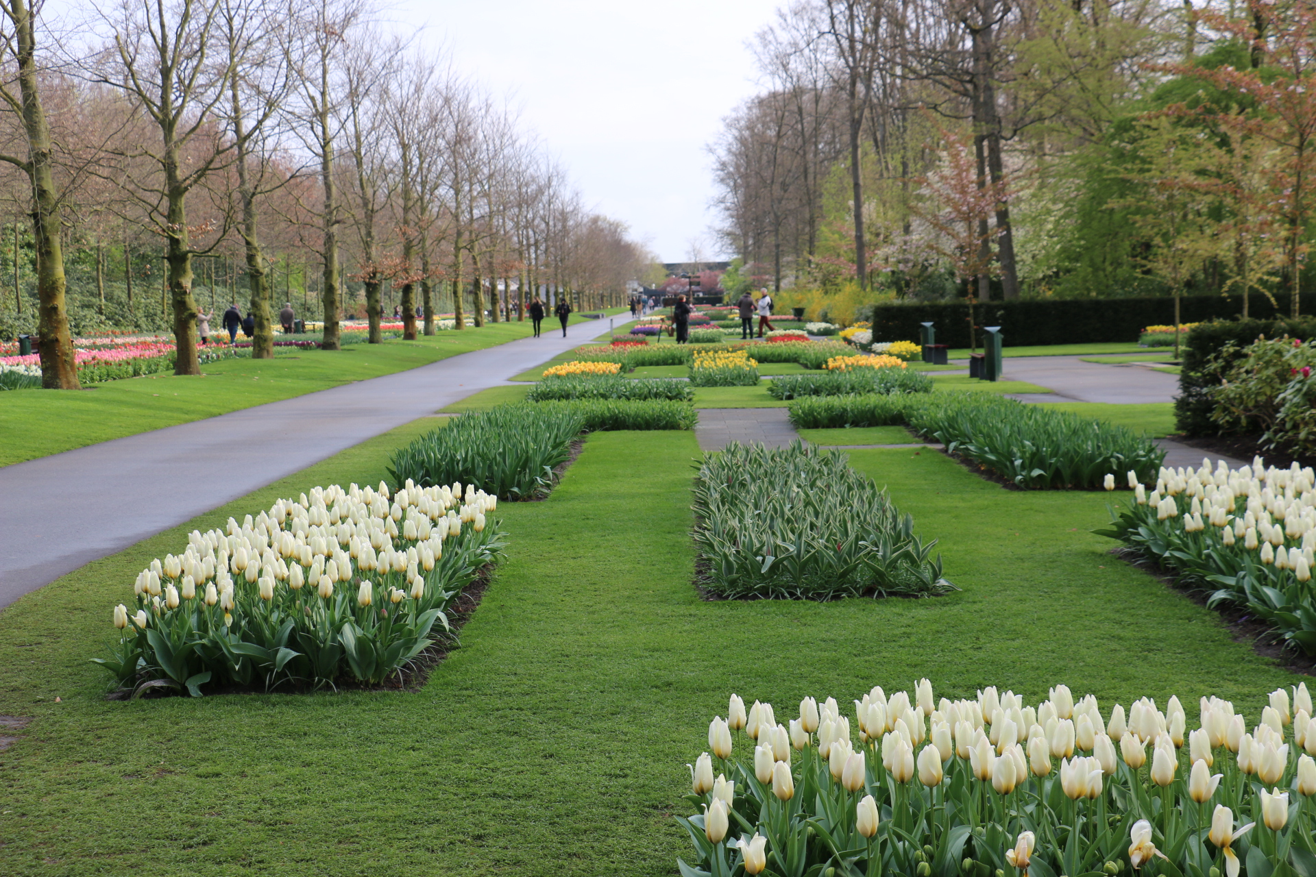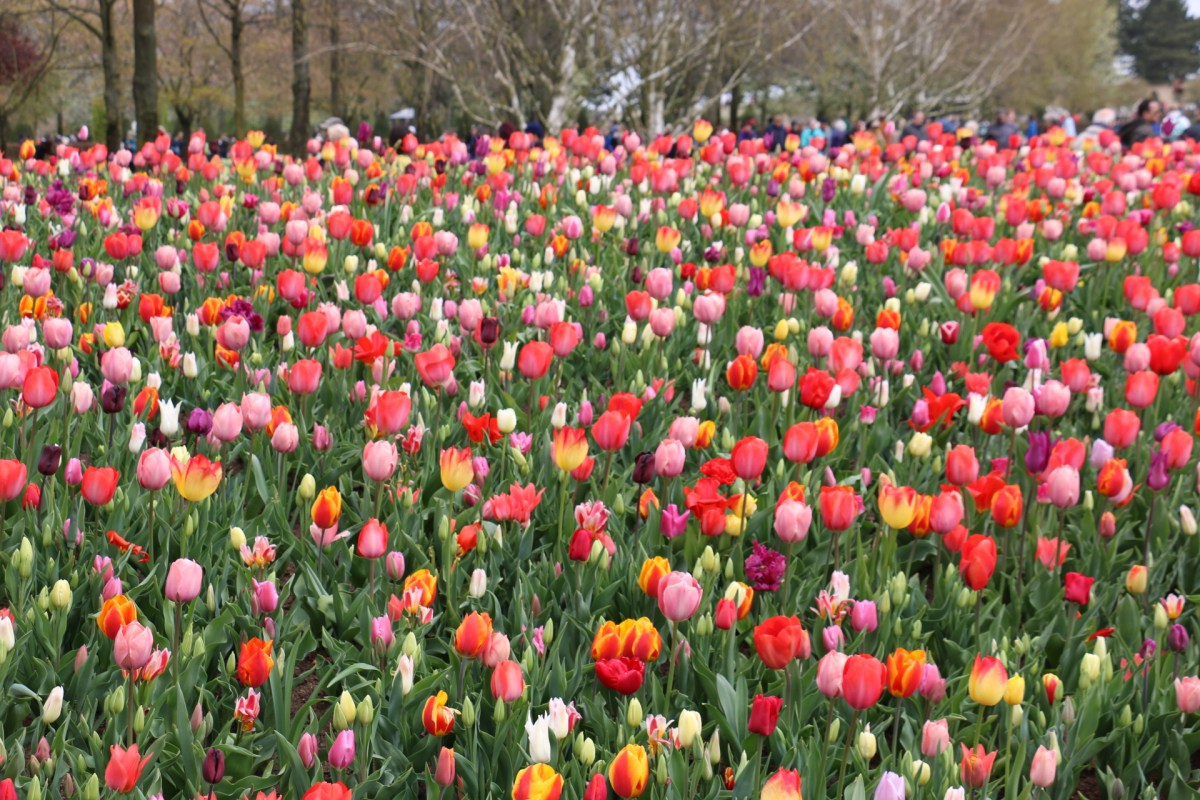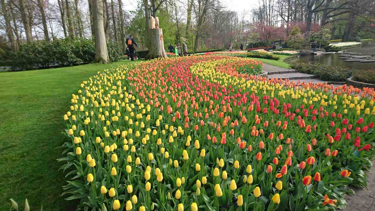 Redan innanför portarna möts man av en hel kulle med tulpaner.