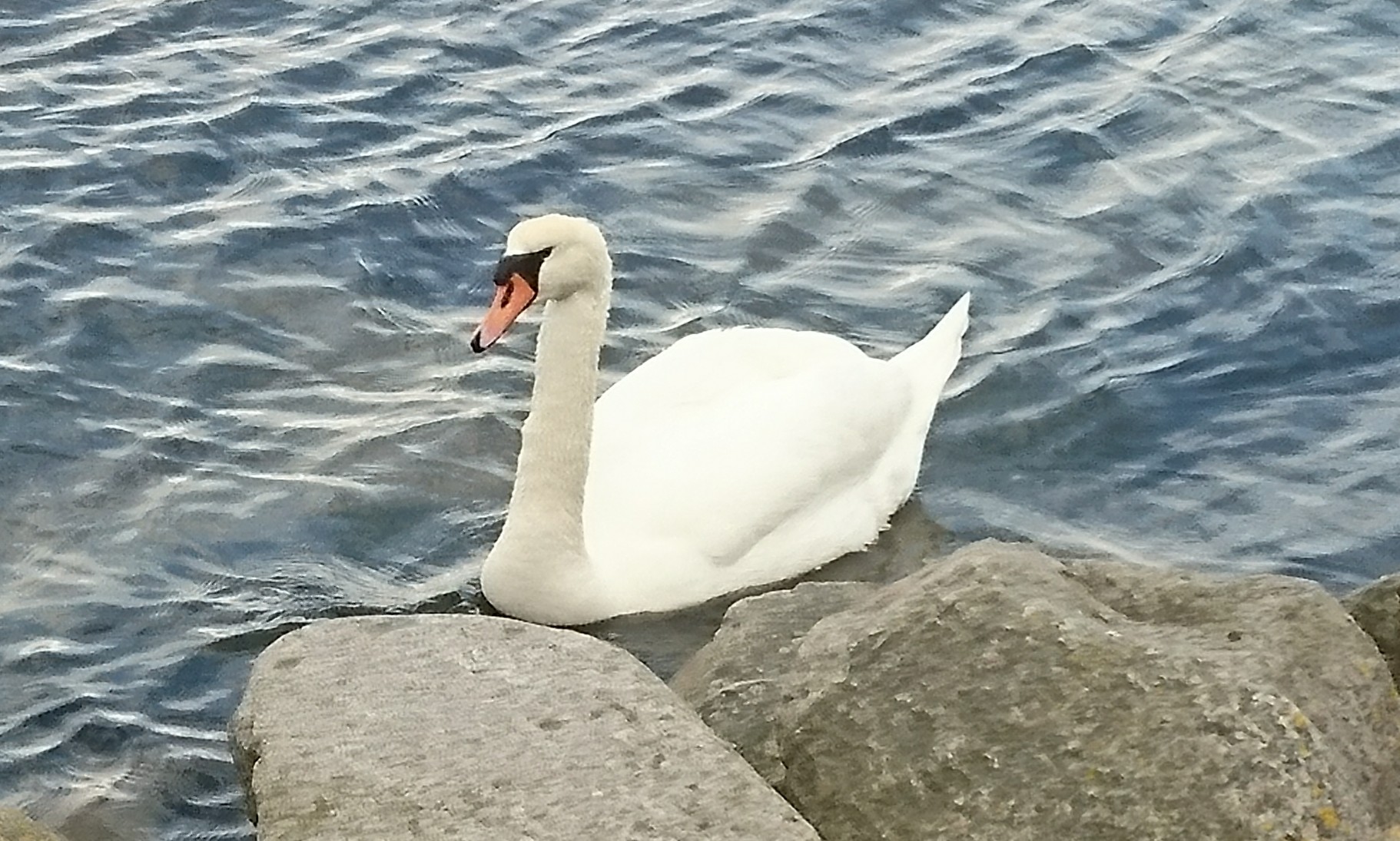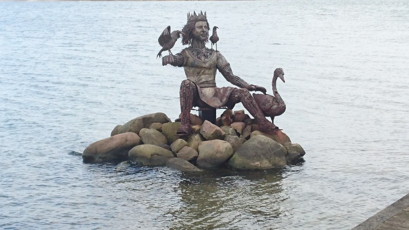 Staty i vattnet efter promenadvägen in till centrumEn knölsvan höll till invid strandenHamnen i Heiligenhafen