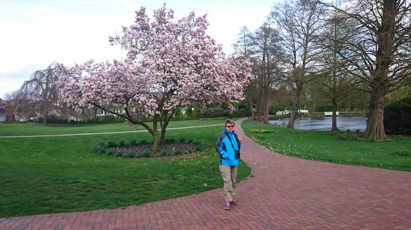 Går förbi brandstationen i WildeshausenBlommande träd i den fina parkenGott om gräsänderNilgås håller till i dammen