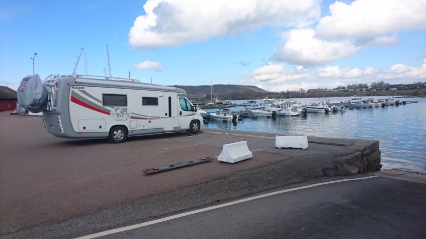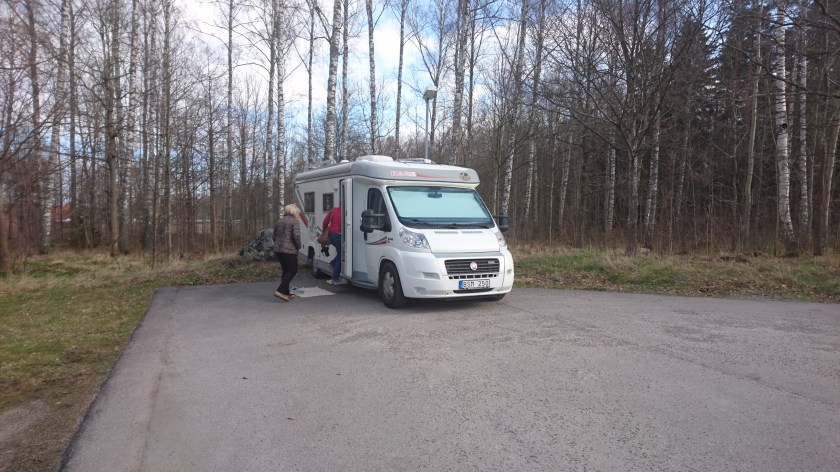 Vi lämnar ställplatsen i Örkelljunga vid halv tiotiden efter att betalat 100 kronor med Swich för en natt med el. Kör mot Ödeshög och ställplatsen vid Hästholmen. Det är sol och bara en plusgrad då vi kör E4 norrut. Lite trafik så det flöt på bra och 12:30 kommer vi till ställplatsen i Hästholmen.
