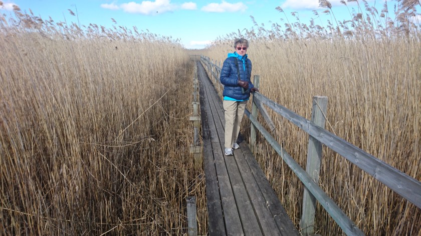 Vi lämnar ställplatsen i Hästholmen vid niotiden och kör till Naturum vid Tåkern. Det är mest sol och +2 grader.