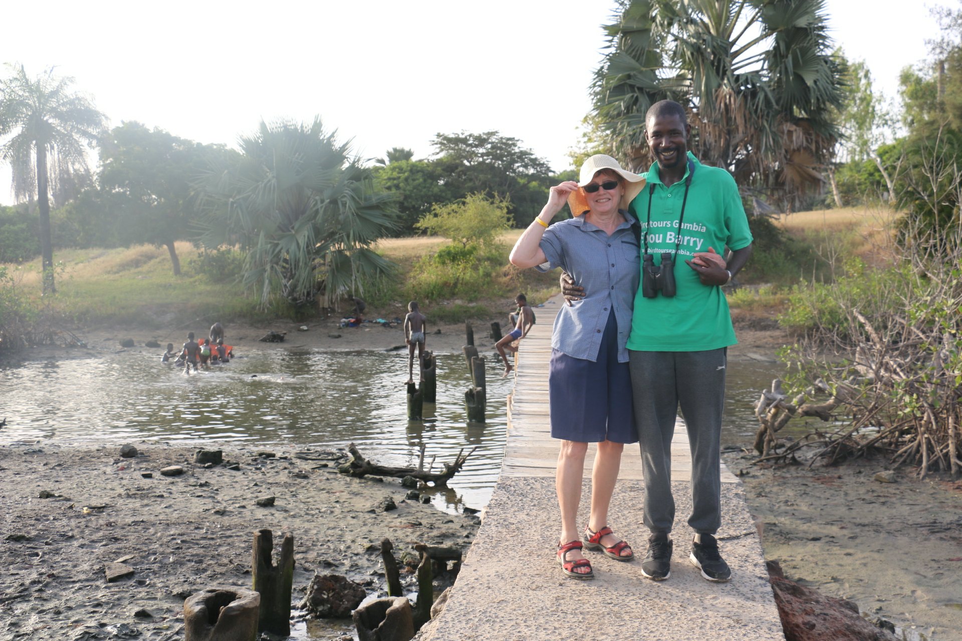 Efter frukosten klockan 07:00, som bestod av stekt ägg, vita bönor i tomatsås, vitt bröd och kaffe, är det båttur på Gambiafloden och i Bao Balong Wetland Naturreserv. Det är ett stort våtmarksområde intill Gambiafloden med mestadels mangroveträd. Huvudmålet är vitryggig natthäger. Fyra storskarvar flög över oss då vi gick ombord på den smala träbåten. Det var vi och holländarna Ebou och en lokalguid samt båtföraren ombord. Vi kör över den mycket breda Gambiafloden som här är 5-600 meter bred. Man kör på kanaler i mangroveträskområde. Ormhalsfåglar satt överallt i träden. En gigantisk goliathäger flög upp och högt i ett torrt träd satt några europeiska biätare. Några vitstrupiga biätare satt i ett annat träd. Färden går längre in i träsket och på ett öppet område går några ullhalsstorkar. Ser också en helig ibisar och huvudet av en hadadaibis. Några småvadare syns också, kärrsnäppa och skogssnäppa. En afrikansk ibisstork flög över oss. Vi närmar oss området där den vitryggiga natthägern brukar hålla till. Den sitter ofta väl gömd på dagkvist i tät mangrove. Lokalguiden ser den plötsligt och holländarna ser den men jag och Birgitta fick inte se den då den försvann längre in i snåren. Efter dryga två timmar är åter vid Tendaba Camp där vi checkar ut och kör vidare mot Gorgetown. Efter vägen ser vi en stridsörn sväva över oss och nästan samtidigt kom en gycklarörn ganska lågt cirklande. Vid Soma kör vi norrut för att ta färjan över Gambiafloden till norra sidan. Innan färjeläget kom en vitryggig gam seglande på hög höjd. Vi passerar Gambiafloden och i byn Farafenni äter vi lunch på en enkel Gambisk restaurang. Stekt ris med fisk. Spännande med så ovanlig miljö. Efter vägen ser vi en Beaudouins ormörn komma fint nära oss samt en brun ormörn på långt håll. Kommer sedan förbi ett våtmarksområde där vi ser flera krokodilväktare och några svarthuvade vipor. Fortsätter mot Lamin Koto där vi åter korsar Gambiafloden på en mycket liten färja. Söder om floden ligger den gamla huvudstaden Gorgetown, som numera heter, Janjanburhe. Härifrån var det inte långt till Baonolong Camp. Här var det slita dåligt städade rum med en stor fläkten i taket.