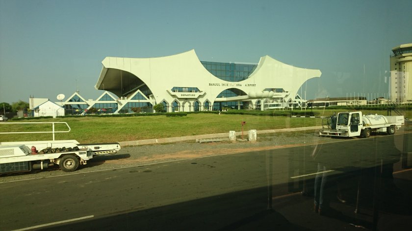 Tidig väckning, 04:40 och efter frukost går minibussen klockan 05:40 som tar oss till terminal 5. Lite strul med automatincheckningen så vi fick cheka in som vanligt i alla fall. Planet kom iväg 55 minuter försenat från Arlanda. Efter en lugn flygning mellanlandar vi på Grand Canaria efter 5 tim och 24 minuter. En knapp timma står vi på marken medans planet tankas och ny besättning går ombord. Vi fortsätter så till Banjol i Gambia och efter 2:19 tim i luften landar vi på Banjol flygplats.
