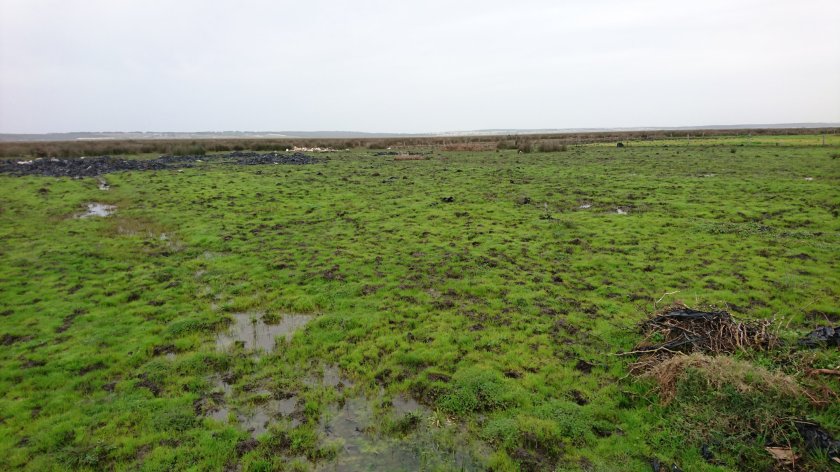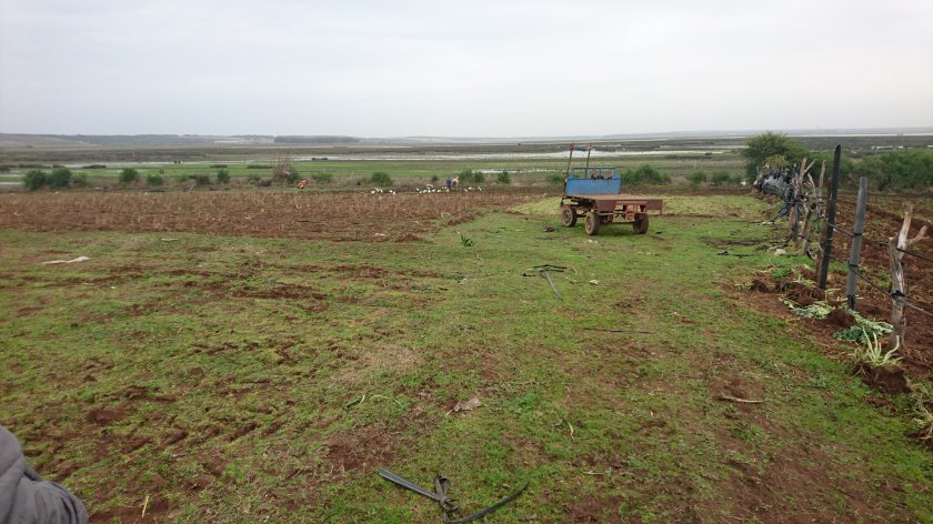 Bokade en guide för att se kapuggla i dag. Klockan 09:00 träffar vi honom utanför infarten till campingen. Han kom i en ganska risig spanskregistrerad bil som han enligt uppgift lånat av sin bror. Lokalen ligger på motsatta sidan av lagunen Merja Zerga och det är 22 kilometer dit. Kapugglan håller till på fuktiga strandängar och är mycket sällsynt. Vår guide, dom inte verkar kunna så mycket om fåglar och har dessutom ingen kikare, säger sig veta var Kapugglan håller till. Det är mulet och lite kyligt. Vi kör av den större asfalterade vägen och in på en liten typ traktorväg ner mot sjön som är omgiven av odlingar. Det odlas mycket potatis på friland och jordgubbar i låga växthus av plast som täcker stora arealer. Traktorvägen är lerig och gropig och slutar vid en blöt äng.