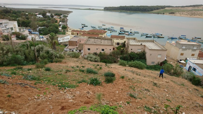 Fin utsikt över lagunen Merja Zerga Vi går gatan fram till slutet på höjden med utsikt mot Atlanten.