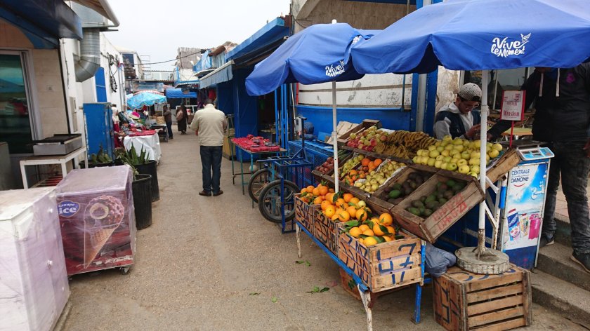 Efter lunch går vi en promenad till marknaden i centrala Moulay Bousselham.