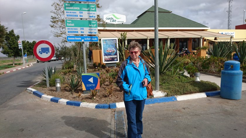 Vi lämnar Camping Said vid 08:30 tiden och kör mot Marrakech. Det är växlande molnighet och +13 ungefär. Vi kör ut på motorvägen och det är mycket trafik då vi passerar Casablanka. Det kom ett par korta regnskurar. Det flyter på bra och efter c:a 20 mil stannar vi vid ett Rastställe och fikar.