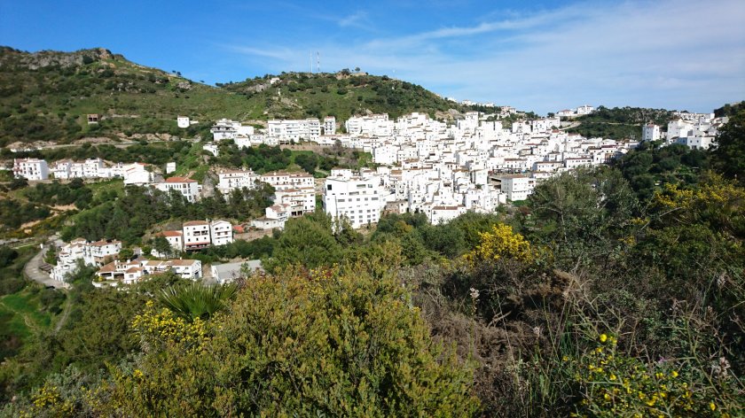 Lämnar ställplatsen Area de Caseras vid niotiden och kör mot en camping utanför Nerja. Vi kör den smala vägen förbi byn Caseras och tar sedan A7 (vi har ju valt bort betalvägar) som går nära kusten och förbi Malaga. Kommer så till Camping El Pino. Det såg trångt ut så vi går in och kollar. Det är ju påsk så det är fullt med spanjorer på campingen. Små och trånga platser så vi avstår denna och söker en ny camping. En svensk som bor permanent här kommer och pratar då han såg vår Kabe. Hittar så Aula de la Naturaleza Cortijo San Miguel och det var bara 5-6 km dit. Campingen ligger som i en trädgård. Campingvärden tar emot och låser upp grinden.