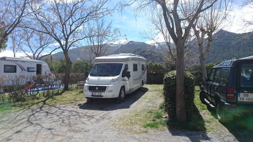 2018-04-01 Söndag PåskdagenLämnar camping Aula de la Naturaleza Cortijo San Miguel efter att betalat 50€ för två nätter med utmärkt el och bra Wifi i bilen. Vi kör nu mot Granada. Följer N340 till Motril där vi fyller på gasol och tankar. Kör sedan A44 till Granada och camping Los Lomas, Güéjar-sierra. Från Granada är det 14 km smal och krokig väg till campingen.