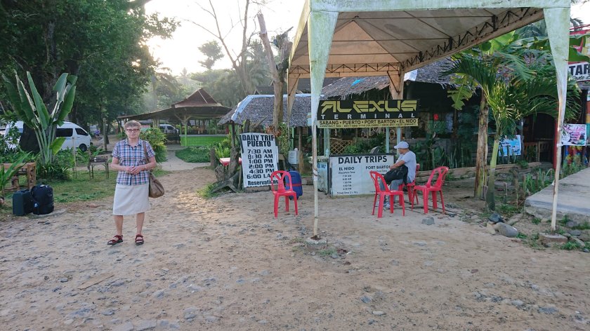 I dag är det resdag. Vi hade ju bokat samma bil tillbaka till Puerto Princesa som körde oss hit men ångrat oss och bokat plats i en minibuss 07:30 då det blev mycket billigare. Hotellvärdinnan fick telefonnumret till chauffören att ringa och avboka. Vi frågade hur det gick men hon hade inte fått något svar. Skumt tyckte vi men kollade inte upp mera. Vi fick hjälp med de stora väskorna till busstationen. Vi var ju uppe redan 05:30 och åt frukost 06:00. Halv sju knallar vi till busstationen.