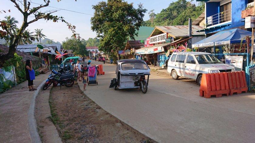 Från stora vägen där bussen stannar det en kilometer upp till turiststället. Vi lät oss skjutsas av motorcykeltaxi för 40 PHP /person.