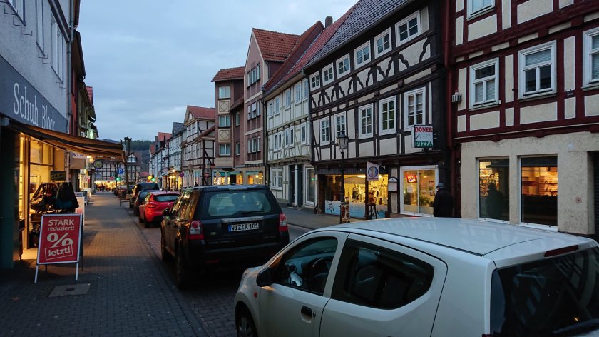 Vi promenerade sedan över floden Werra in till centrum. Det var en överraskande fint centrum med gågator och korsvirkeshus. Det blev inte mer än 30 min promenad då det mörkade fort och blev kyligt.