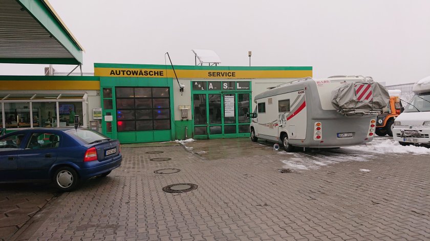 Gråväder och – 5 på morgonen då vi lämnar ställplatsen i Bad Abbach vid 08-tiden. Vi kör direkt till Lanziner Tanke + Caravan EK. Vi får besked om att det nya kylskåpet kommer troligen i morgon. Skall få definitivt besked om två timmar så vi parkerar husbilen utanför bensinstation och lämnar nycklarna.
