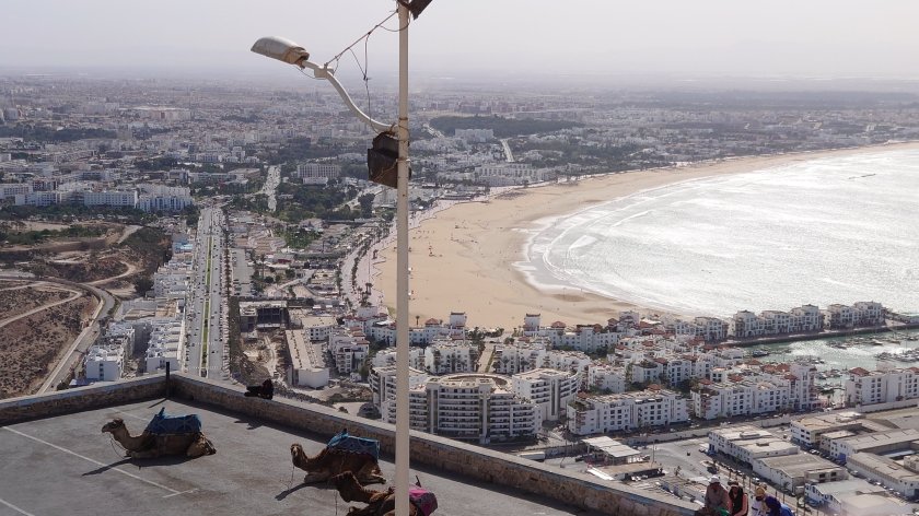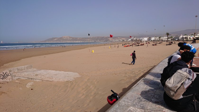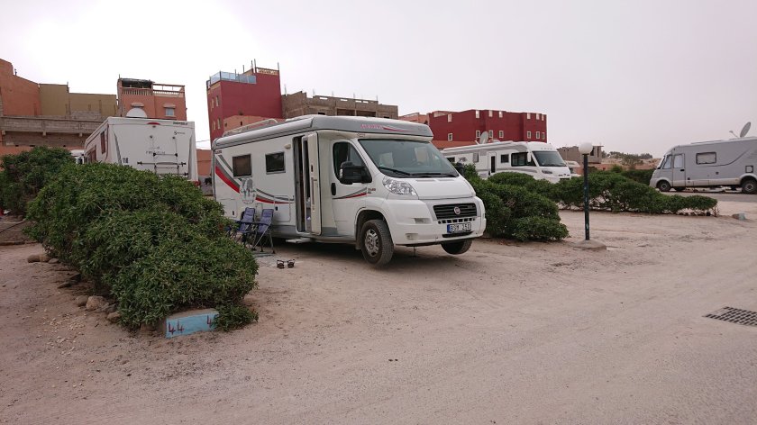 Köper mera surf hos Marocko Telecom eftersom surfen tog slut nu på morgonen. Handlar mat och efter en dryg timme kör vi till Camping International i Agadir. Vi har ju varit här två gånger tidigare så vi hittar en bra plats nära vatten och tömning. Ganska gott om plats då fransmännen börjat åka hem. Många svenska husbilar och vi hamnar intill några. Svenska paret som vi träffade på i Oualidia var också här och vi blev bjudna till deras bil på en whisky. Tar det lugnt under eftermiddagen. Middag i bilen.