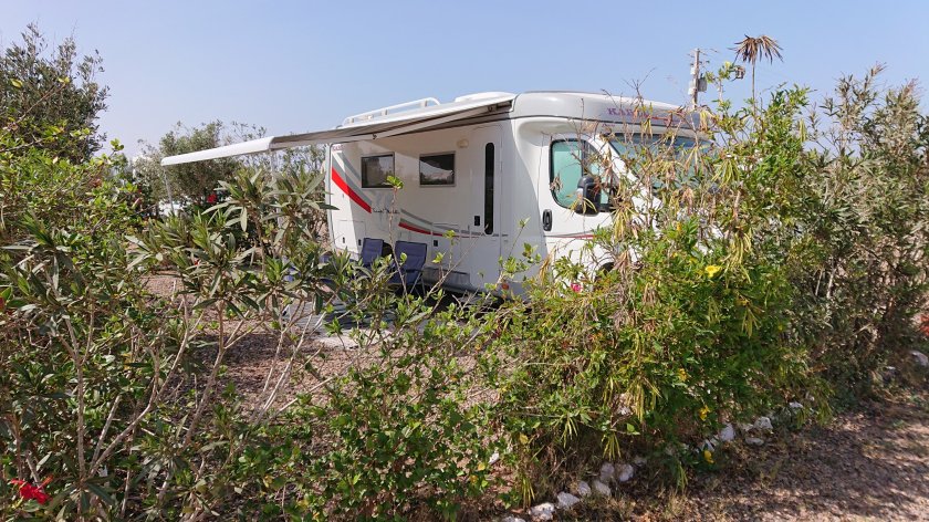 Det är 70 platser innanför en hög mur. Här skall det vara bra enligt utlåtande. Campingen ligger på landet och det är dålig väg i 5 km.