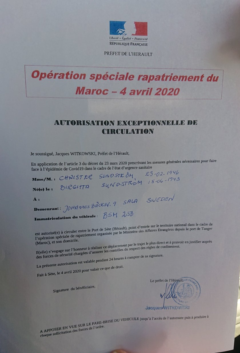 Vi kör av färjan och passkontrollen gick smidigt. Fick också skriva på papper med hälsodeklaration samt fick ett dokument av polisen som ger oss rätt att köra genom Frankrike.