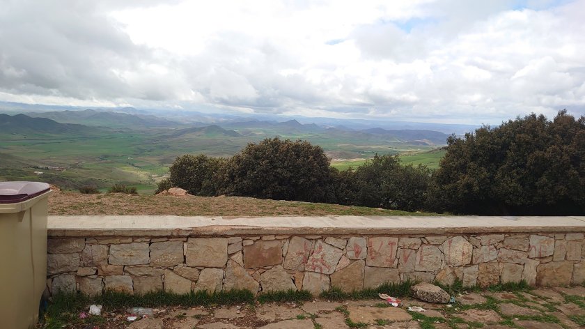 Dieseln kostar 7:28/liter, billigast hittills. Fortsätter förbi Zeida och mot Azrou. Vägen går över en högplatå på 1800 m.ö.h innan man kommer till cederskogen där berberaporna håller till. Det var bara 4 grader och regn samt vägarbeten. Några apor satt på vägen då vi passerar.