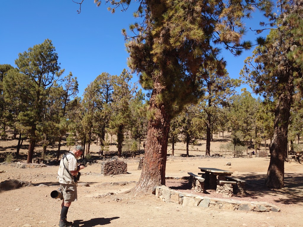 Här i tallskogen håller Teneriffa blå bofink till och den går vi för att se.