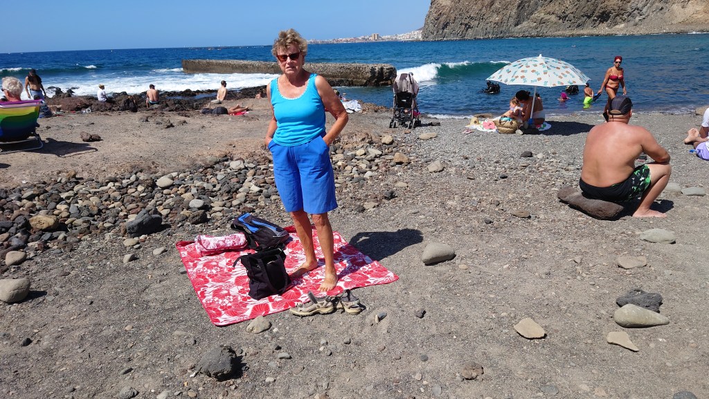 Vi stannar på parkeringen i dag också. Efter frukosten går vi en promenad ner mot stranden och följer strandpromenaden mot Playa de Los Cristianos.