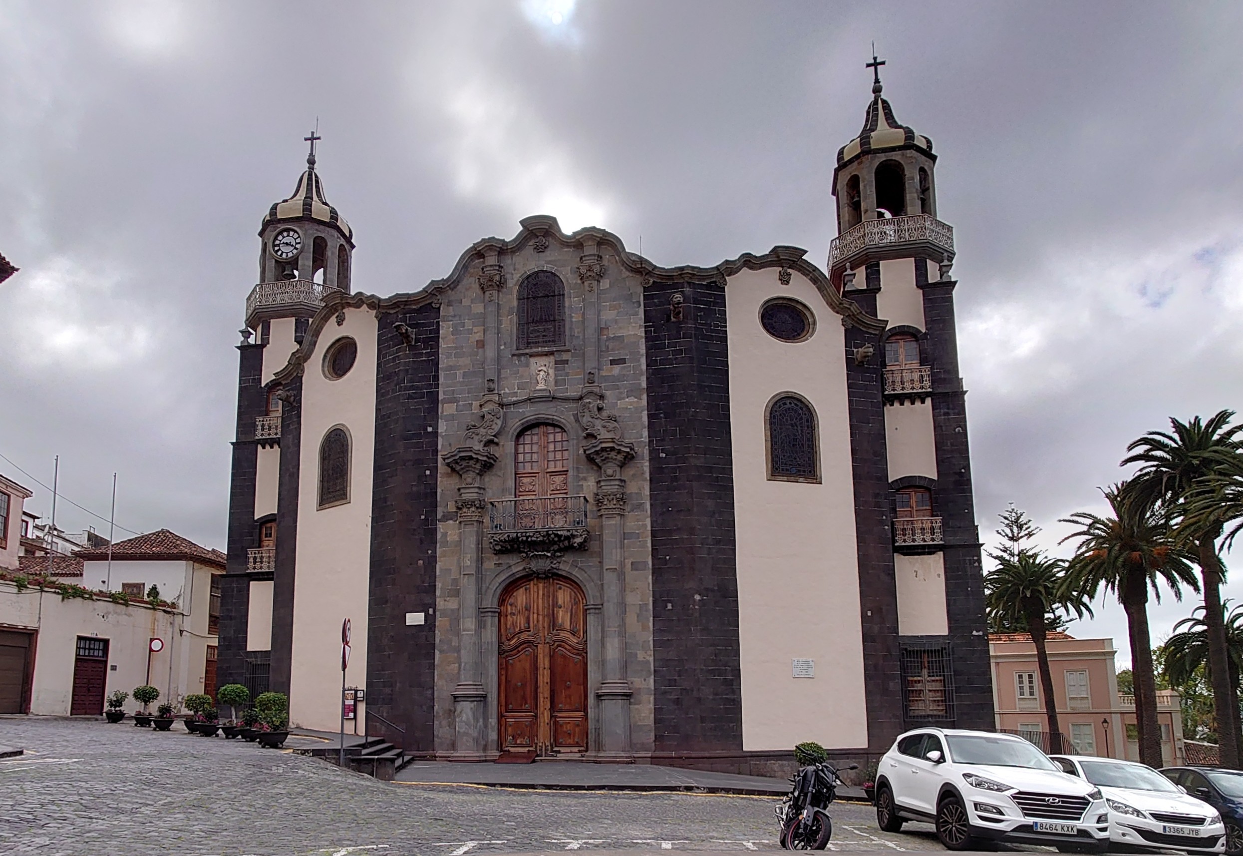 Växlande molnighet och något mindre vind på morgonen. Vid niotiden promenerar vi till centrum för att köpa ett spanskt SIM-kort då våra Telia gigabits minskar oroväckande fort. Köper 100 gigabyte för 25€ och sätter kortet i reservtelefonen som nu får fungera som router. Köper också en 75cl flaska Teneriffa honungsrom. Vid elvatiden lämnar vi parkering i hamnen i Puerto de la Cruz och kör mot La Orotava, som skall vara den äldsta staden på Teneriffa och började byggas på 1500-talet. Det är bara 5 km dit fågelvägen. Stannar först vid serviseplatsen där vi tvättar bilen då den är täckt med en salthinna och fyller o tömmer vatten. La Orotava ligger ju på sluttningen och det är branta gator upp till parkeringen. Bara en bil på den parkering vi ställer oss på med otrolig utsikt över staden.