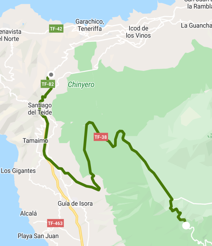 Kör ut på motorvägen västerut och tankar på en BP mack. 1,169€/l och jag tankar 70 liter = 81,93€. Kör sedan väg TF-51 upp förbi Vilaflor och fram till Las Lajas. Mycket brant väg upp med lutning på 10% på några ställen och kurvigt. Fantastiskt utsikt.